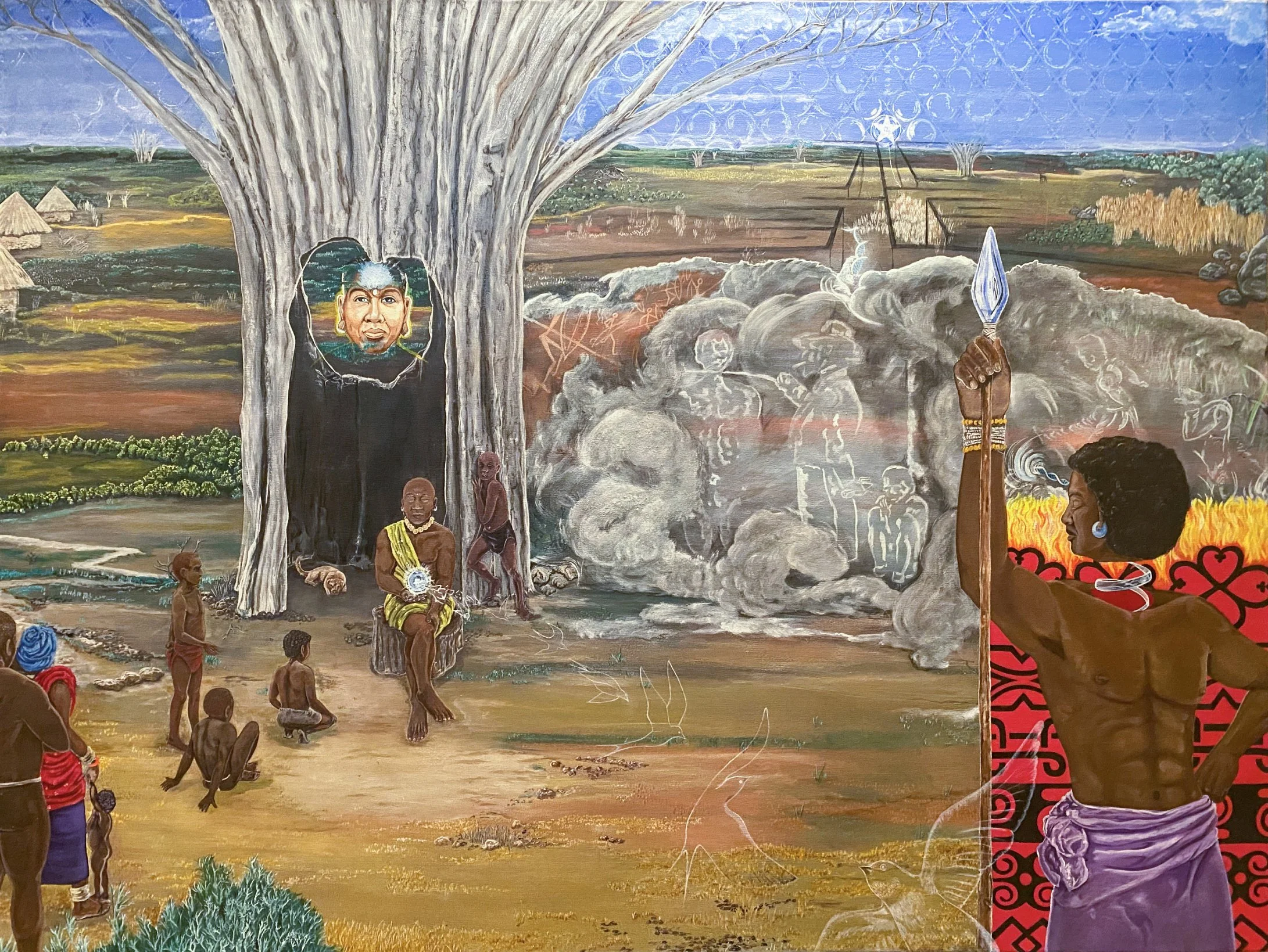 We acknowledge seeing each other (and our ancestors) in our histories. We acknowledge our responsibility to assist each other in what we need to be free now, in the past and future. I am a painting, yet I see you and you see me. My story is from people who used the oral tradition, and lived honoring nature. The word Sawubona is Zulu and it has the same basic meaning as Namaste. Now that we see each other in our full past and present stories, how do we help each other regain our sovereignty?